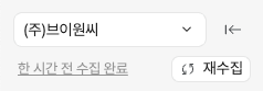 상세 수집 현황은 왼쪽 네비게이션 바 상단의 수집 현황 텍스트(예: 한 시간 전 수집 완료) 클릭 시 확인할 수 있습니다.