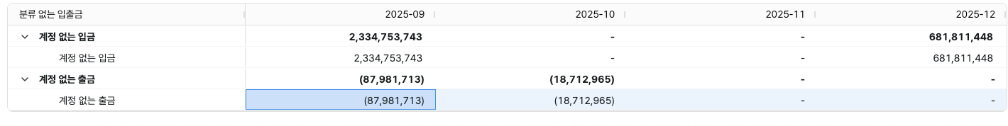 손익 페이지에서 "분류 없는 입출금" 항목 아래 세부항목을 클릭하여 매핑이 가능합니다.